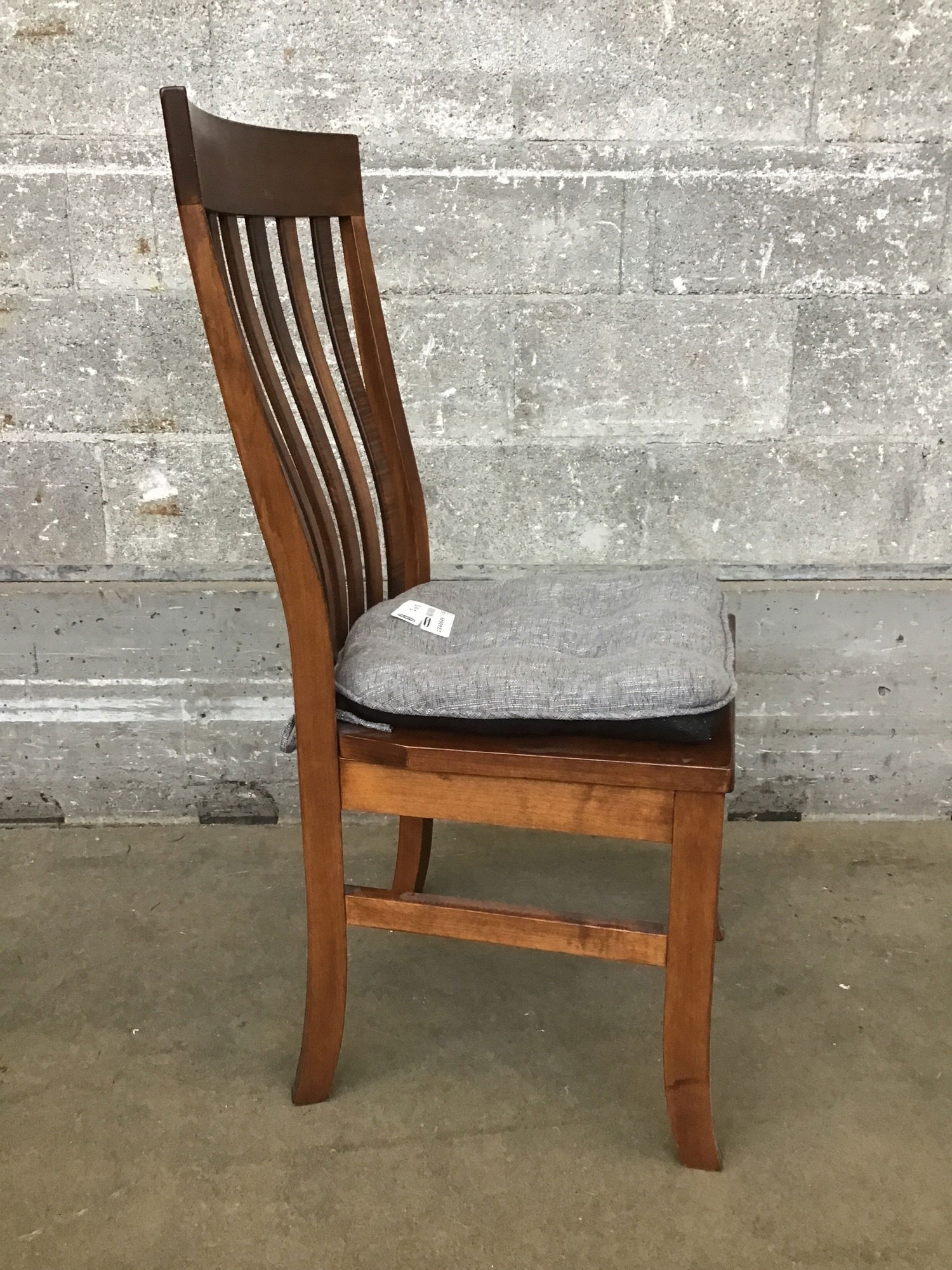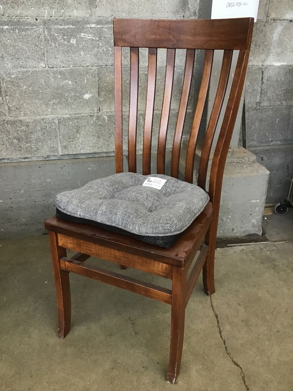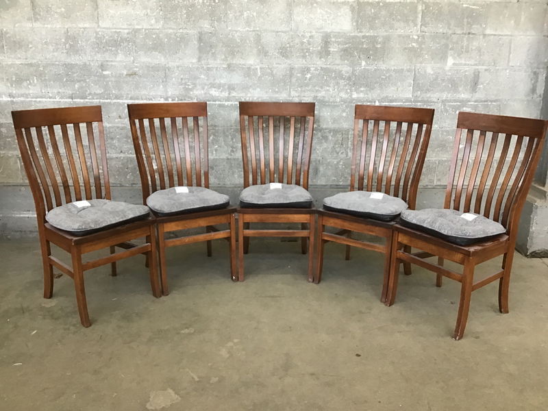 Solid wood five piece dining chair set with curved back, carved butt and removable pads, sold as a set.