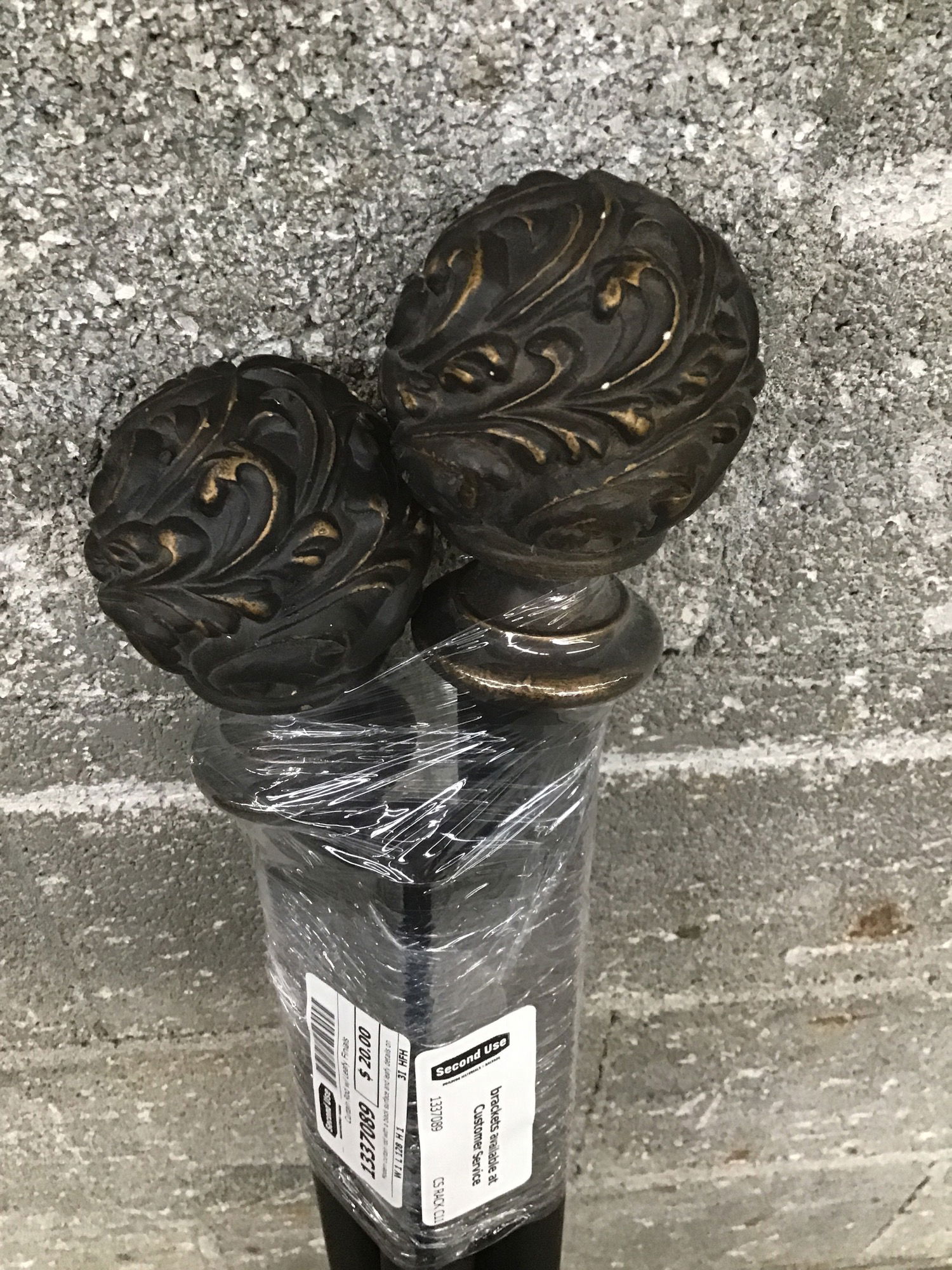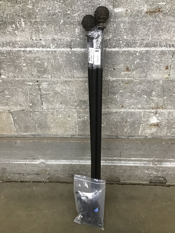 Modern curtain rod with a black surface and leafy details on the finials. Comes with a handful of brackets for easy mounting. Length listed is at maximum.