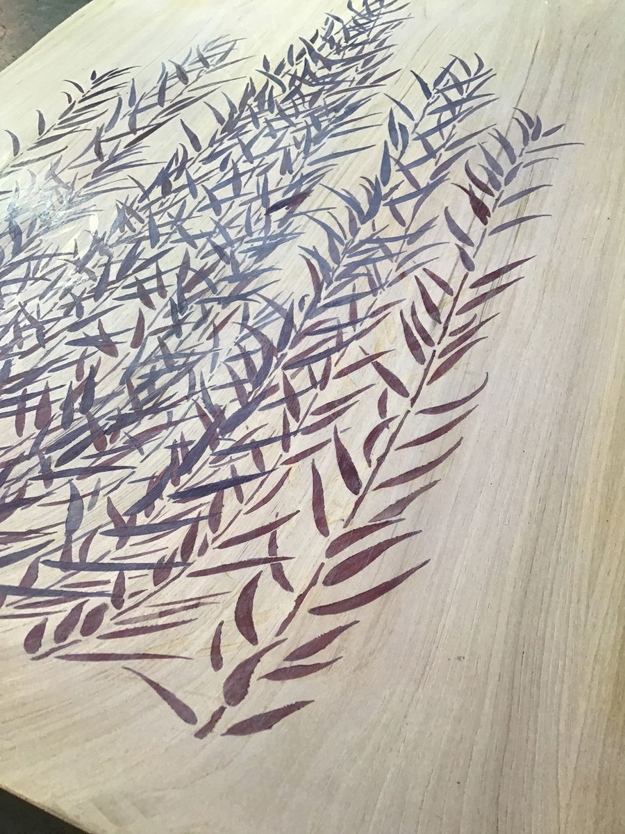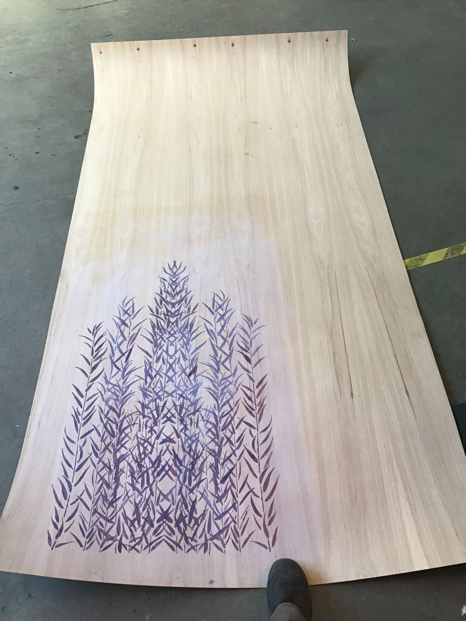 Full sheet of oak veneer that has a custom stained leaf decoration and is ready to glue down!