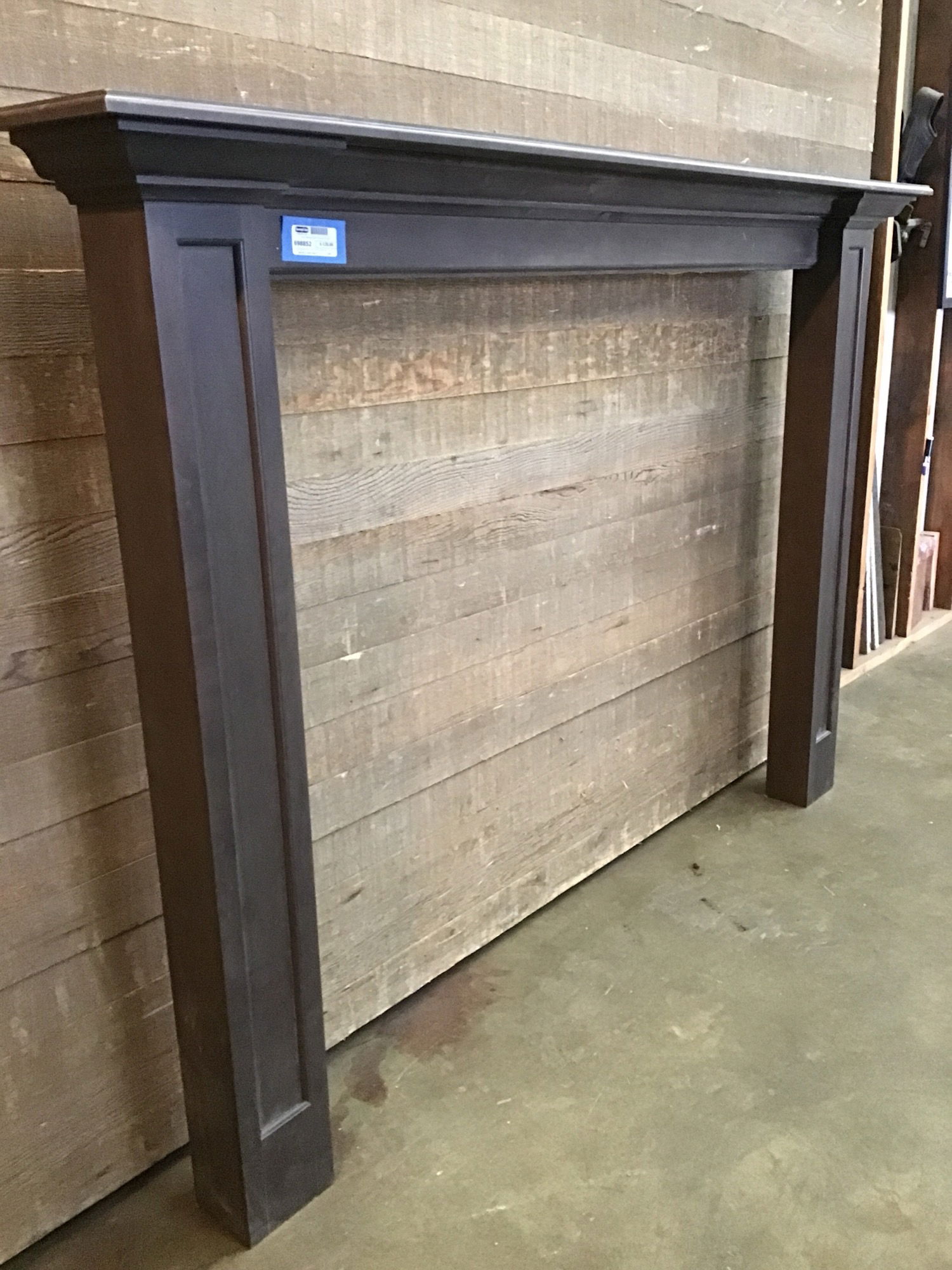 Maple plywood mantel with a matte brownish stain. New and never installed but has some handling marks. Priced accordingly.