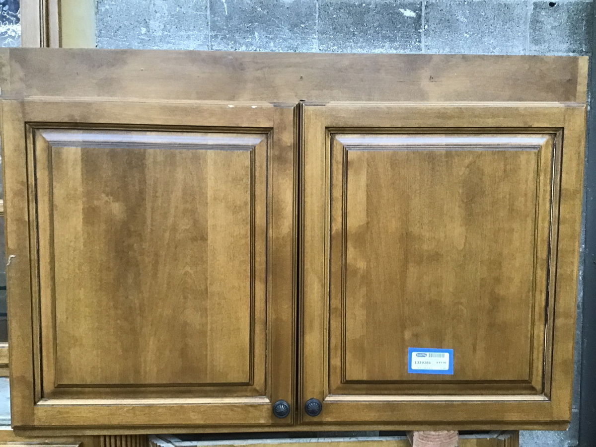Plywood box, birch faced upper cabinet that is extra deep, most likely used as over fridge or sink.