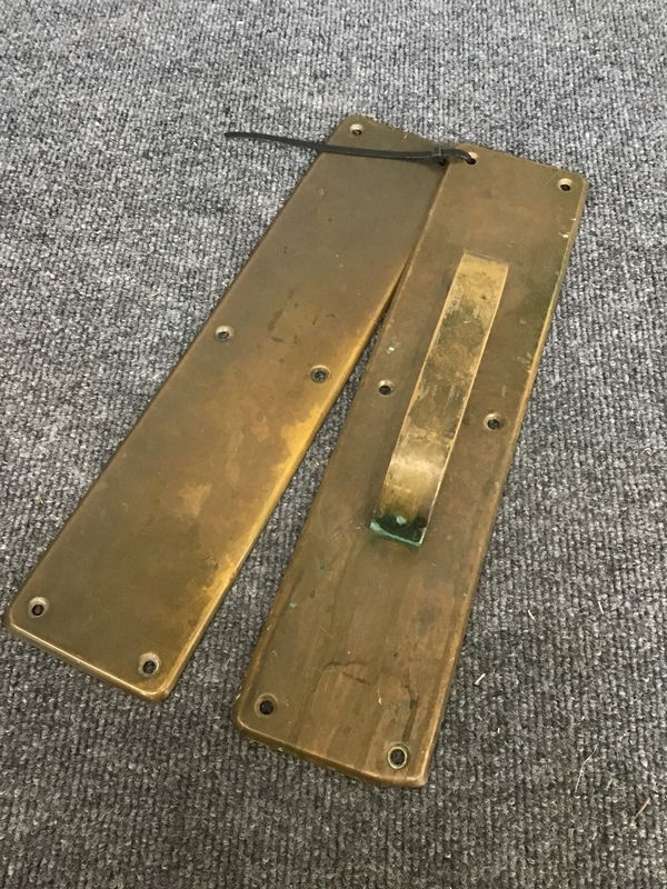 Solid brass door pull handle with push plate.