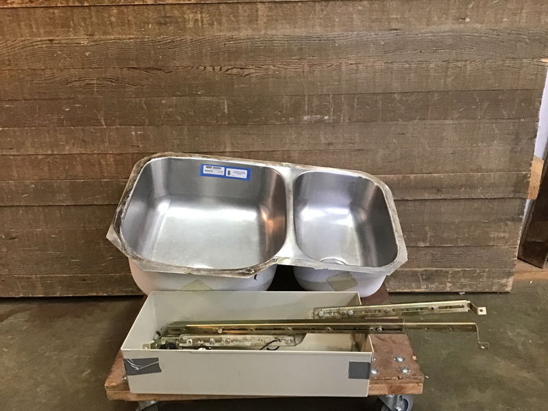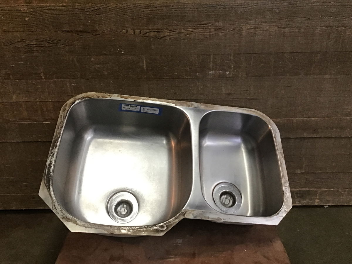 Previously installed undermount double bowl stainless sink. Comes with mounting brackets.