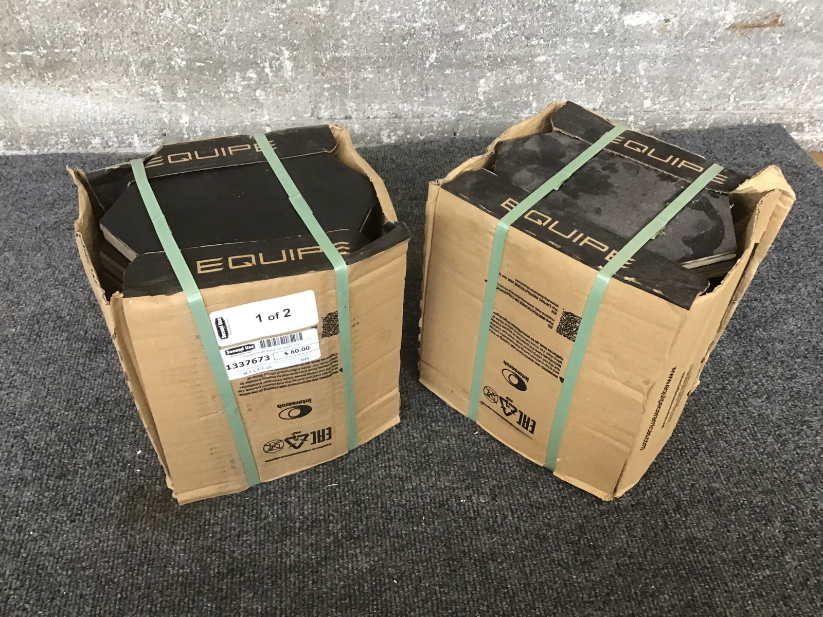 A small lot of wall tiles from Spain by Equipe in a matte black finish with a hexagon shape. Two boxes with 25 tiles each for a total of 50 tiles. Enough to cover an area of about 17 SF.
