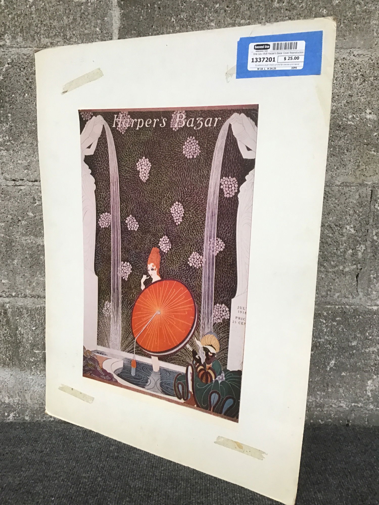 It's whims-o-clock! Check out this fab oversize print reproduction of a Harper's Bazar magazine cover from July 1918 by Erte! Part of a series printed in the 1970s by Parkerhouse Indsutries, this beauty is vintage in its own right. Mounted on posterboard with an identifying label on the back, this print is ready to be popped into the stylish frame of your choice!