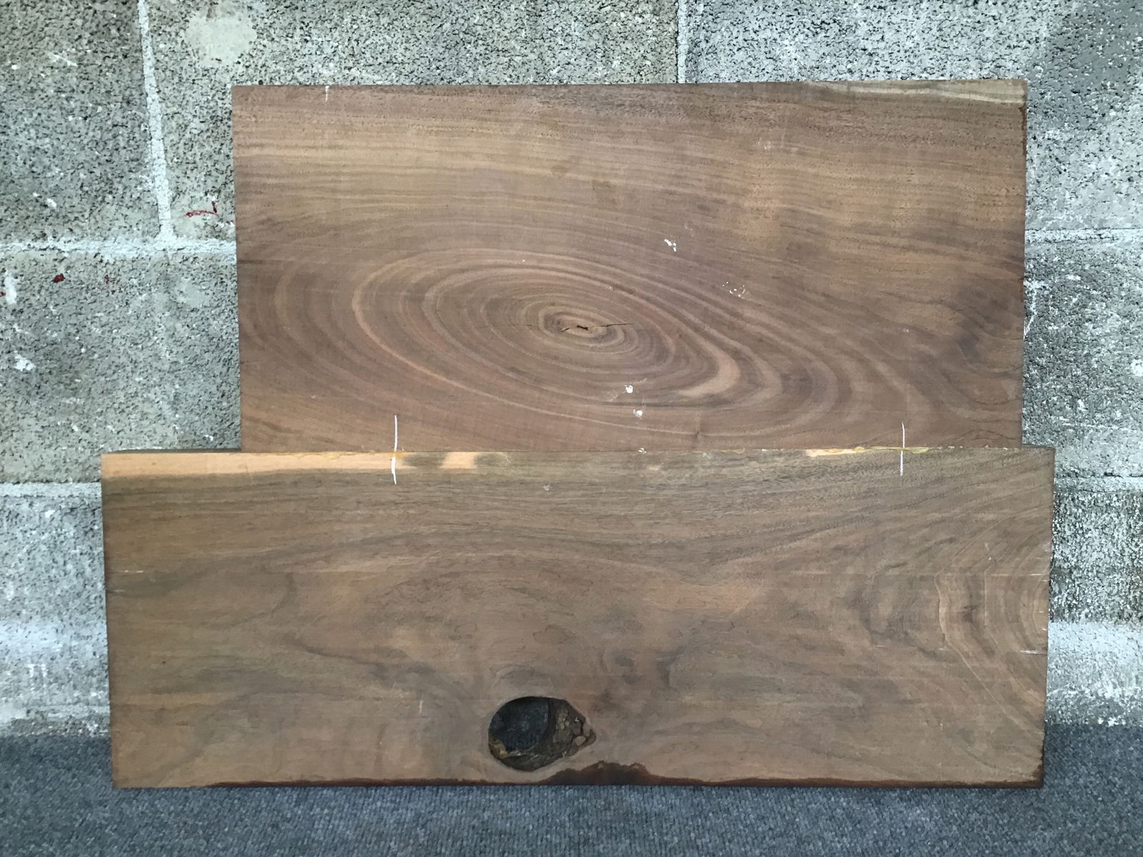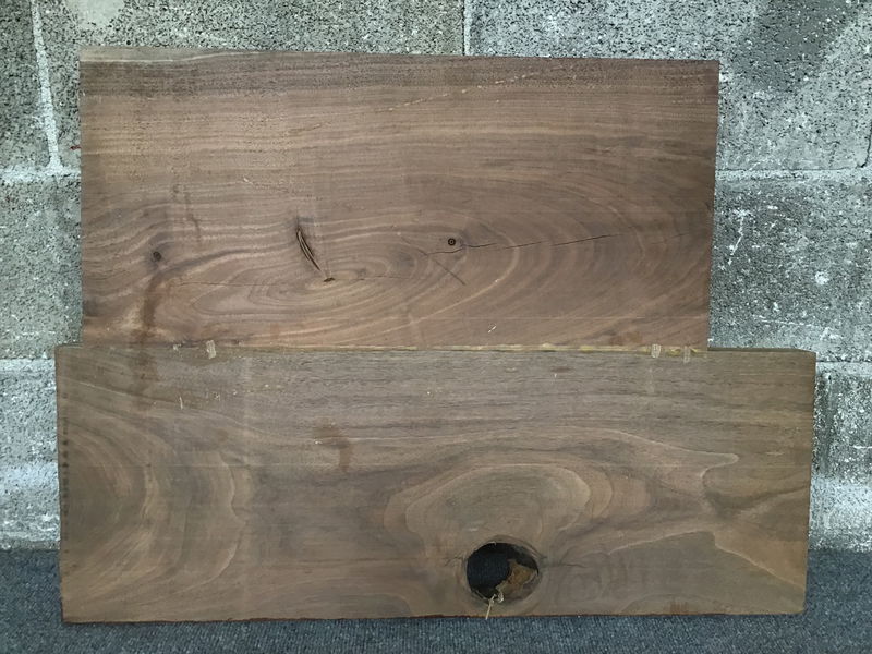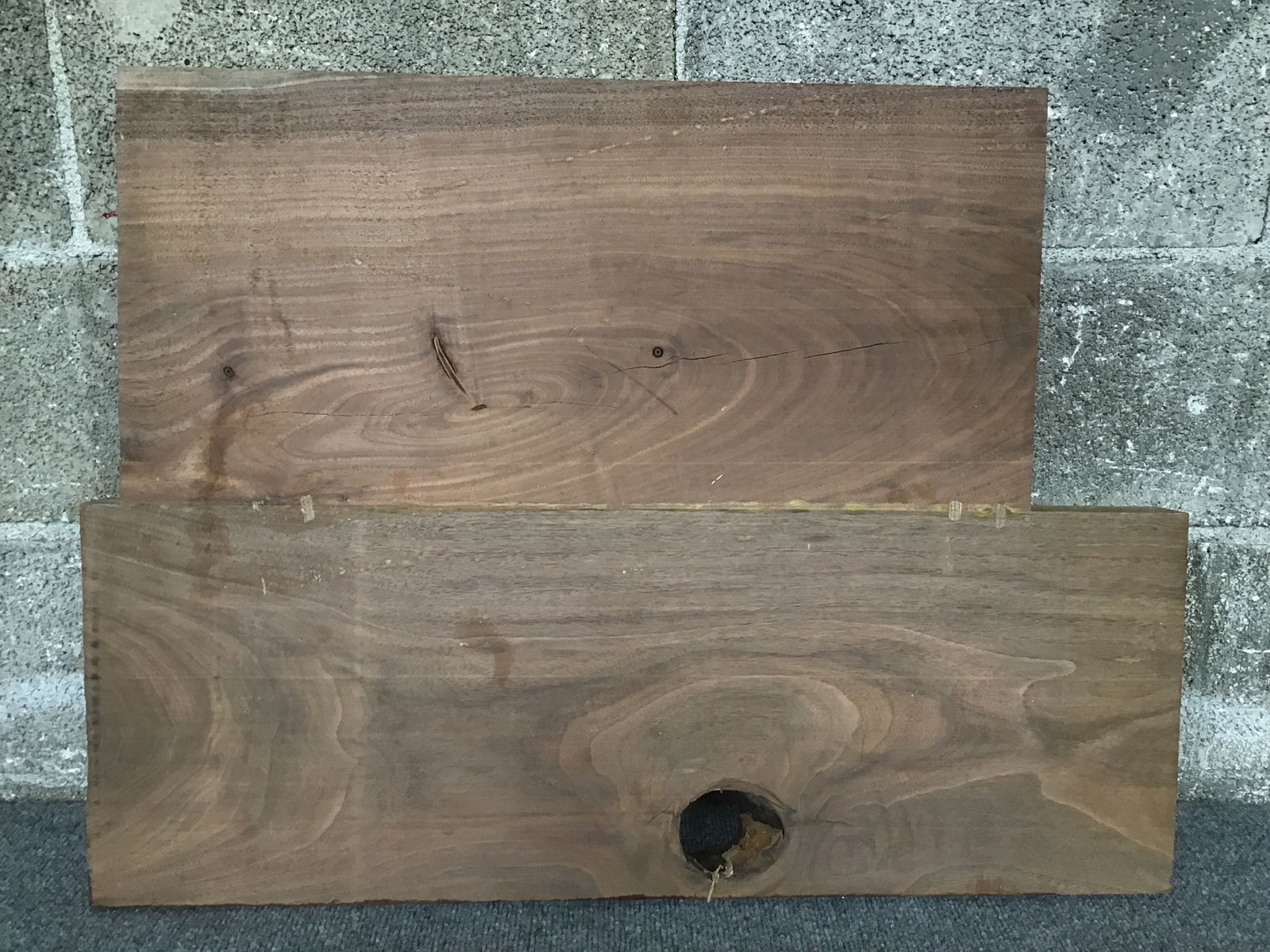 A 2 piece joined walnut slab with excellent color and stunning figures. The longer piece is 22.75w and the longer chunk is about 28. All sides are planed smooth. This is a great head start for your next project!
