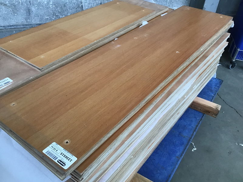 This is a high quality piece of CVG fir plywood shelving that is smooth finish grade and ready to go for use as great shelving boards. Most of these have fastener holes in them but they are evenly spaced and could even be reused. This is a bulk item. No holds please.