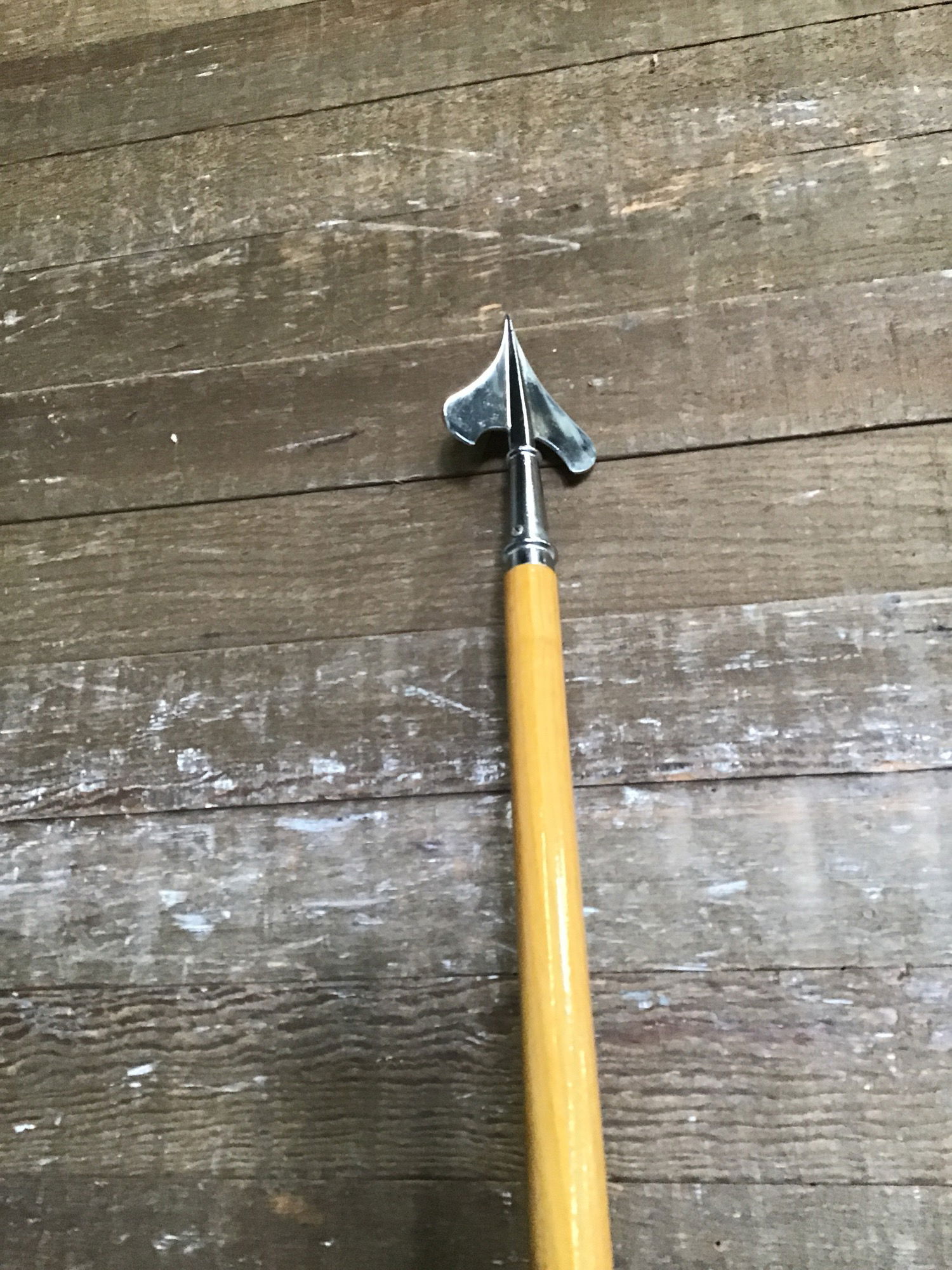 Spear shaped flag pole, unscrews into half pieces for easier transportation. Could be a great way to display your favorite banner or for your flag bearer in your medieval siege larping crew!