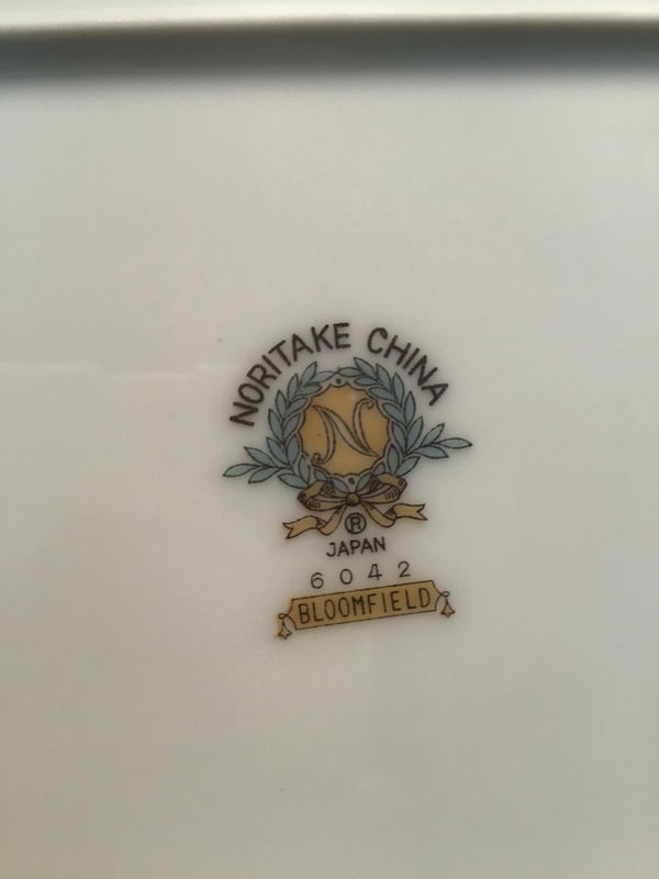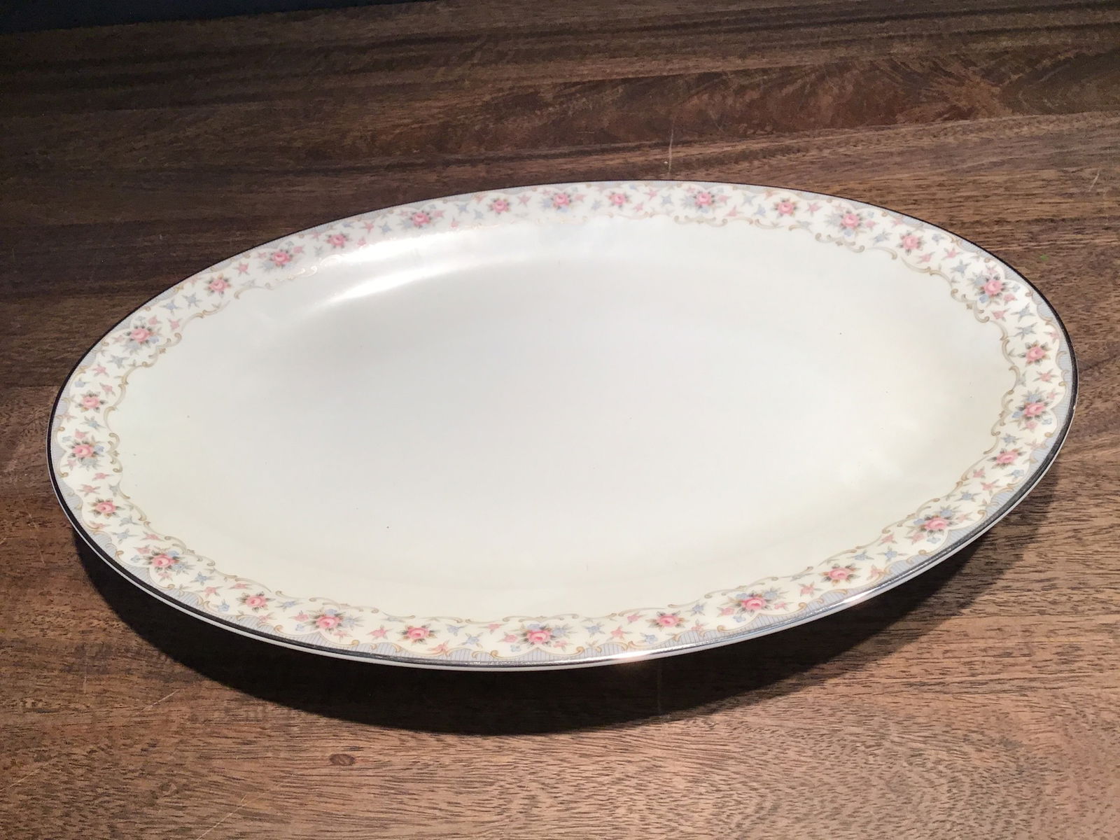Vintage Noritake serving platter with a blue and pink floral design. Handmade in Japan with designer stamp on the bottom.