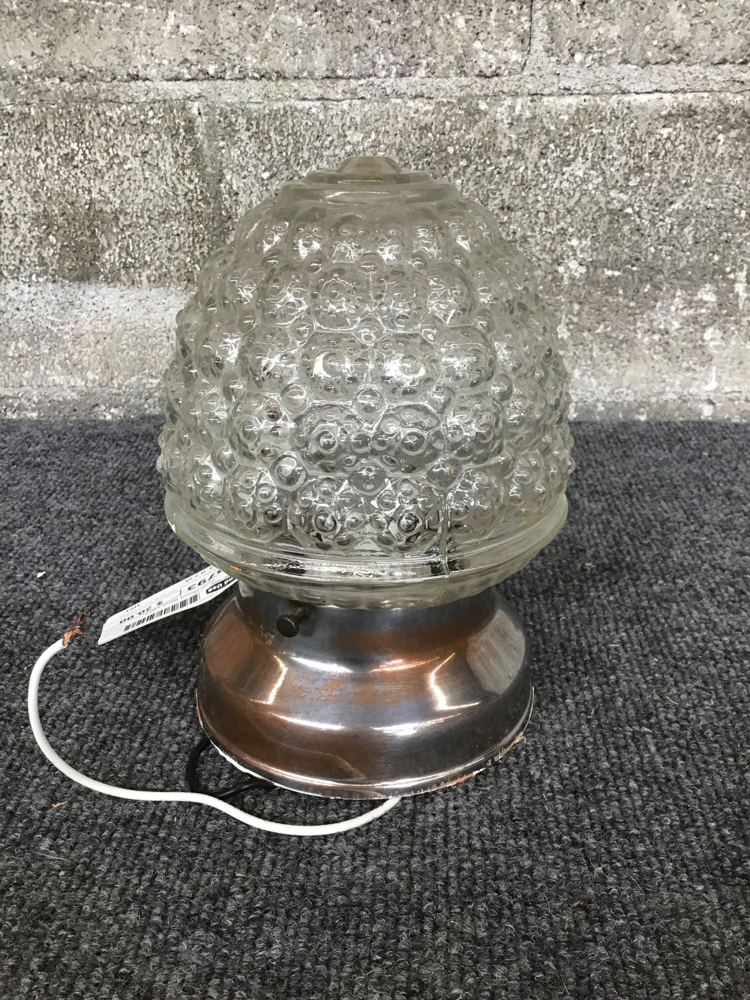 Very cute light with a textured clear shade sort of resembling a berry.