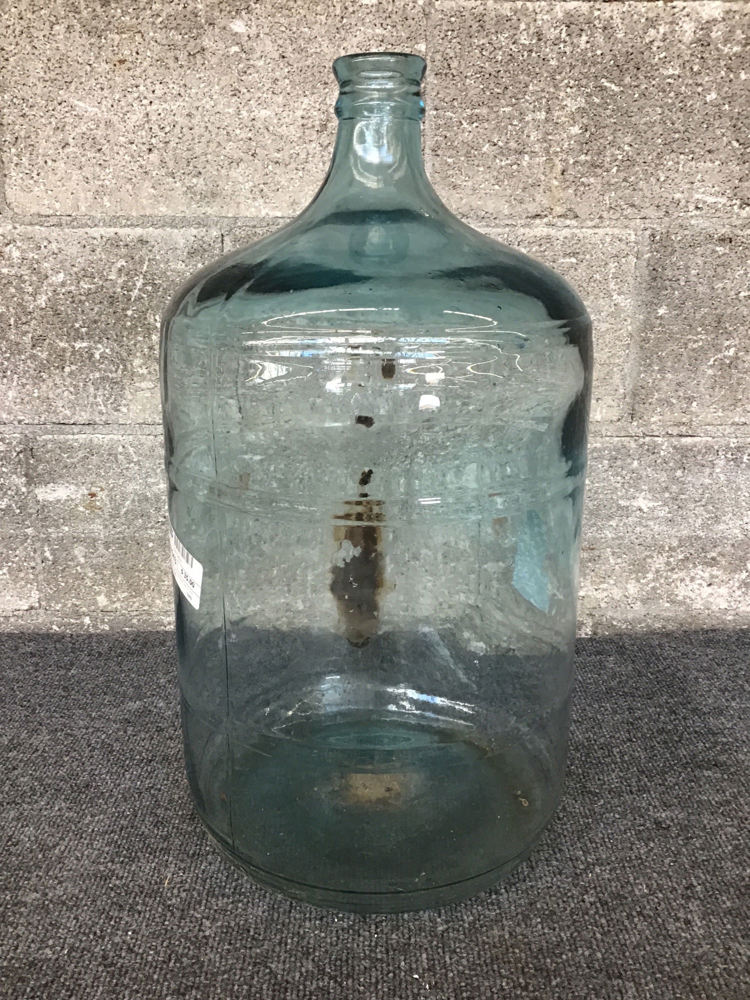 Classic blue tint glass carboy traditionally used for stuff like brewing beer or mead.
