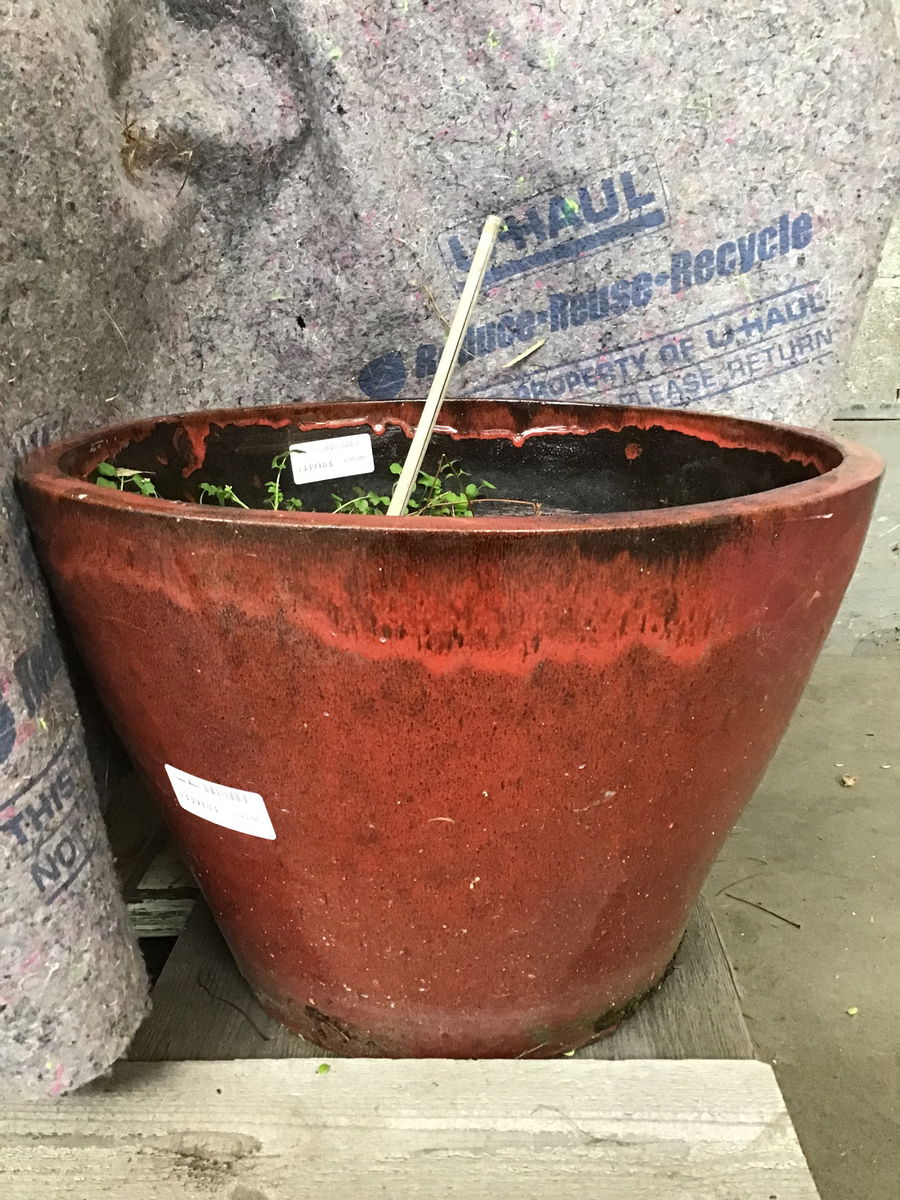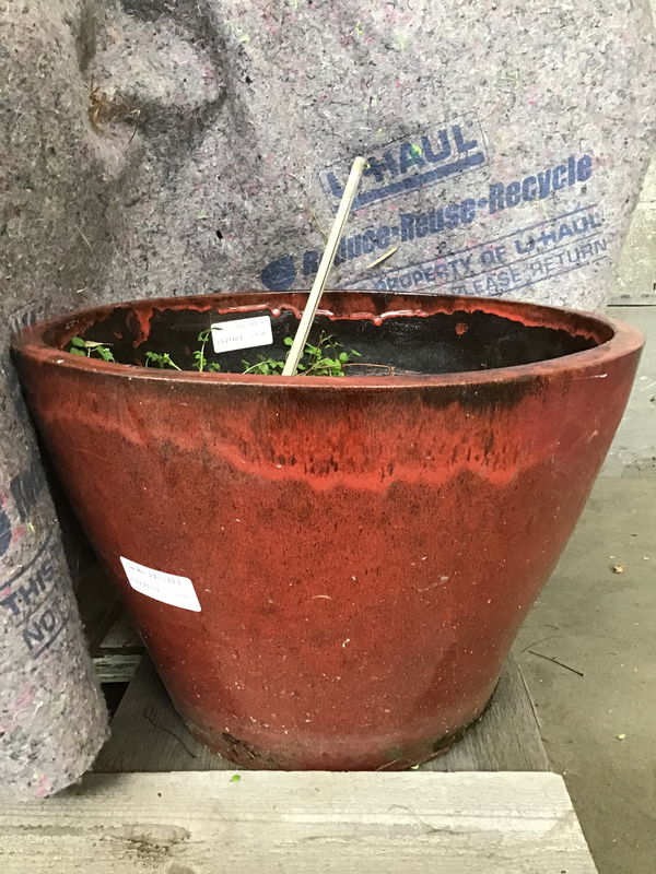 Smooth tapered design red brickish glazed planter. Dimensions are approximate.