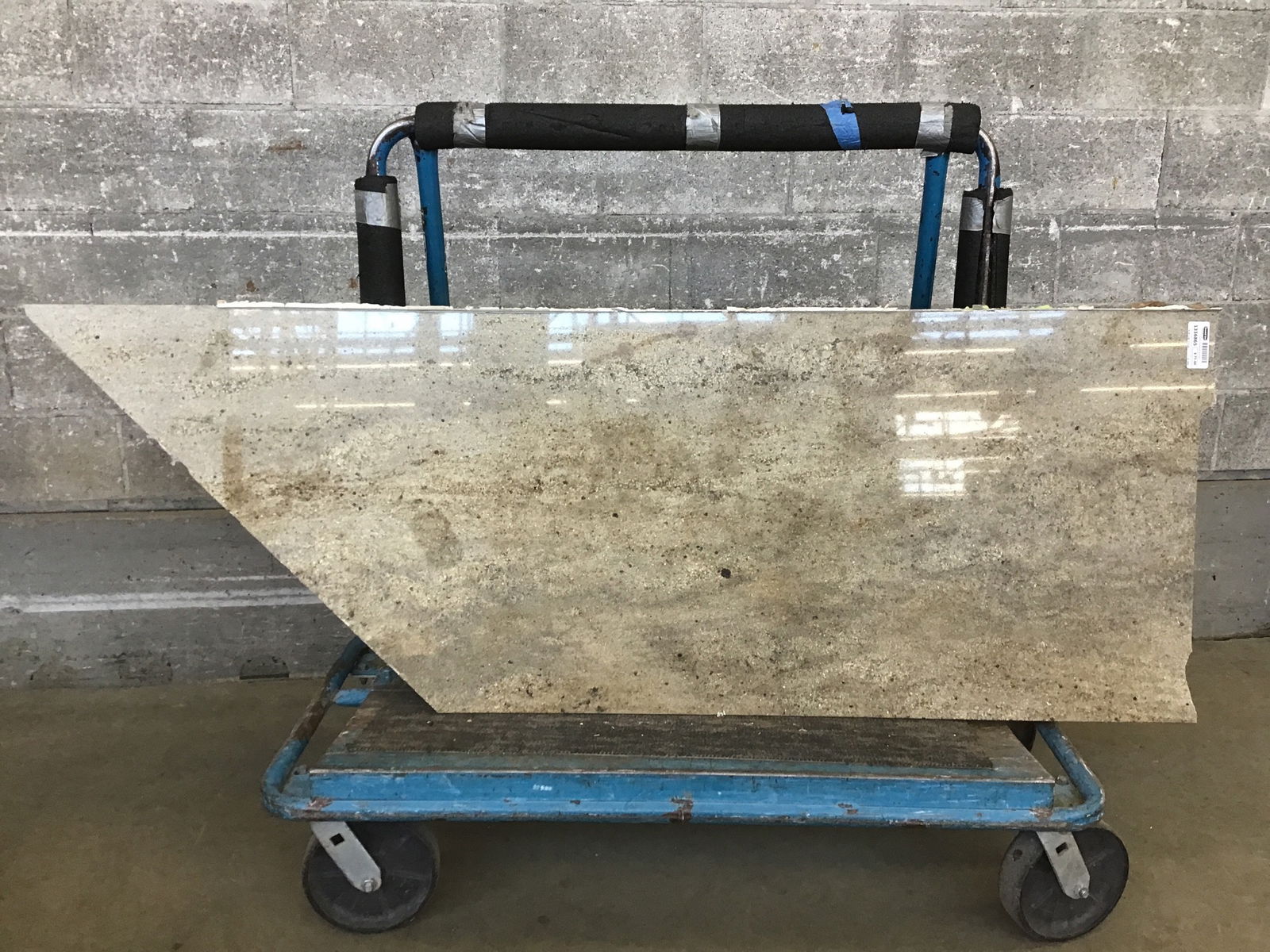 Chunk of remnant granite from a kitchen, there is about 8 usable square feet here and one finished edge.