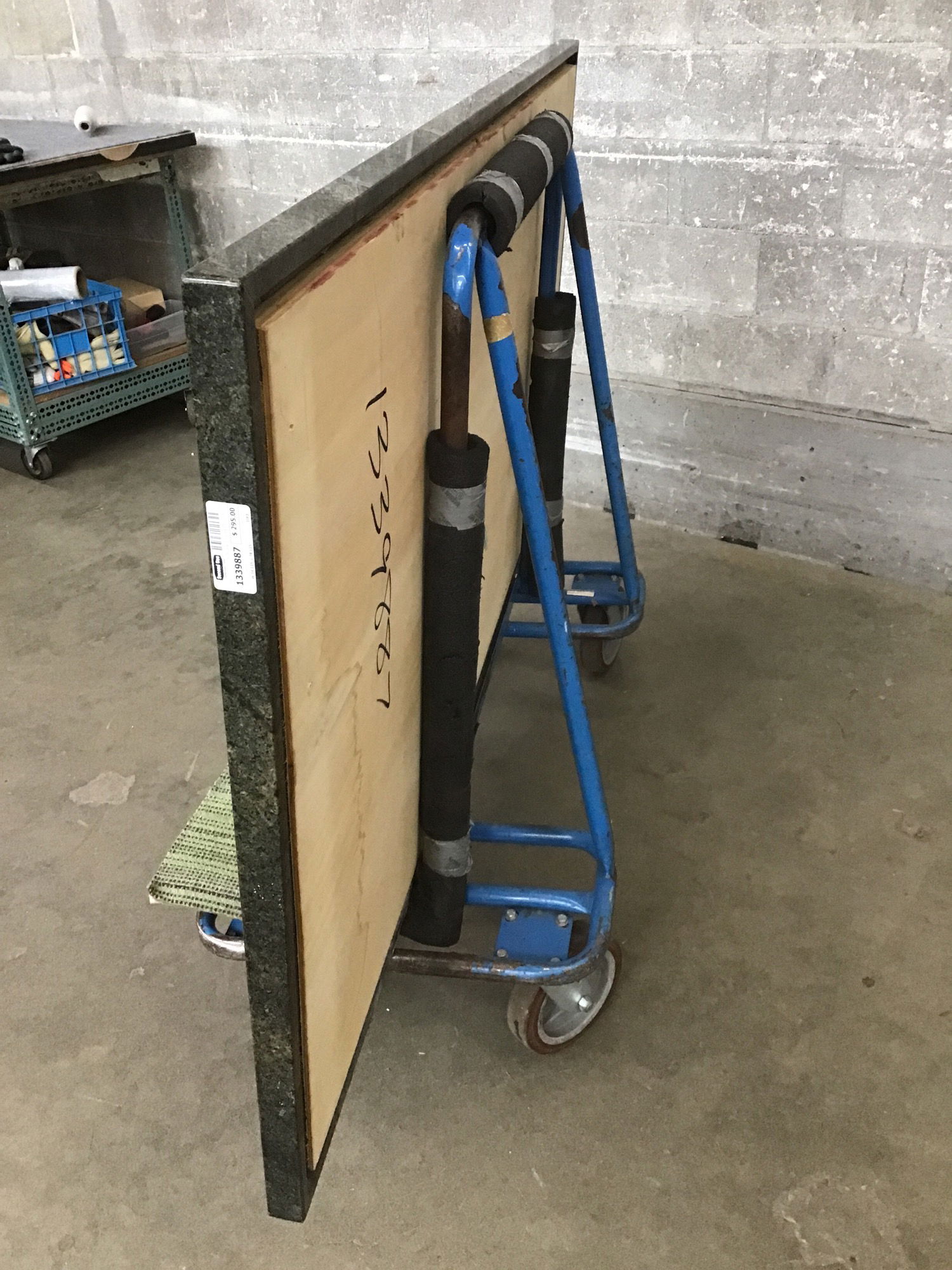 Good sized island countertop with double thickness finished edges all around. Has a 1" thick plywood substrate.