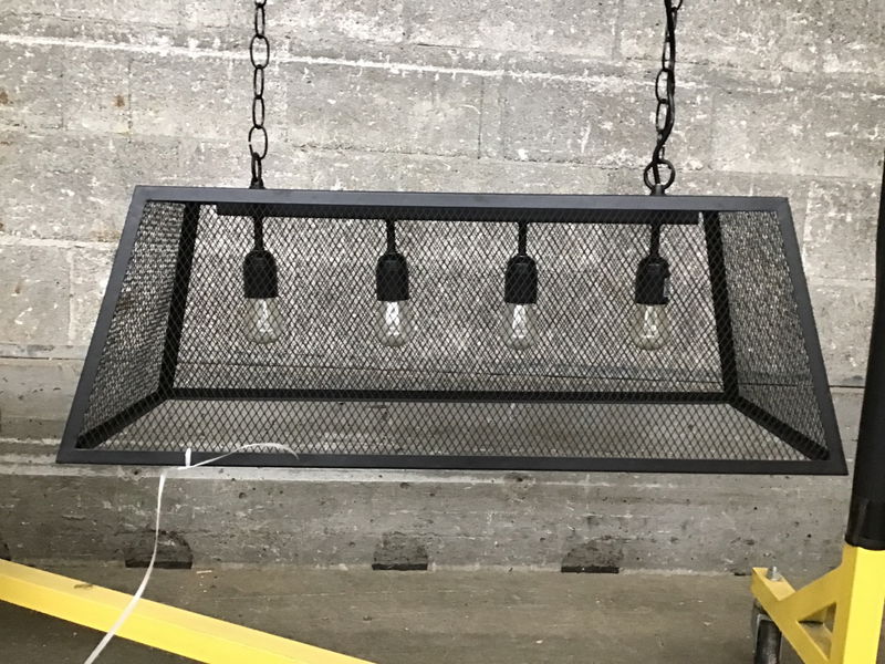 Industrial Cafe Light with an extruded steel shade and 4 bulbs. Finished in matte black.