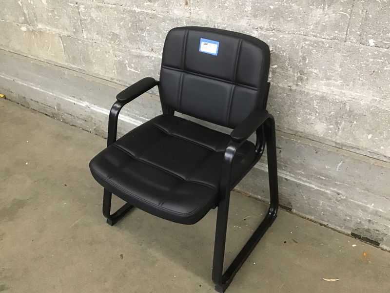 This is a black steel framed waiting room chair with black leather upholstery. Very clean, looks to have hardly ever been used.