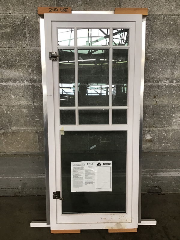 Modern wood thermopane casement window by Stile with a white primed interior and exterior. This was previously a showroom display window and has never been installed.