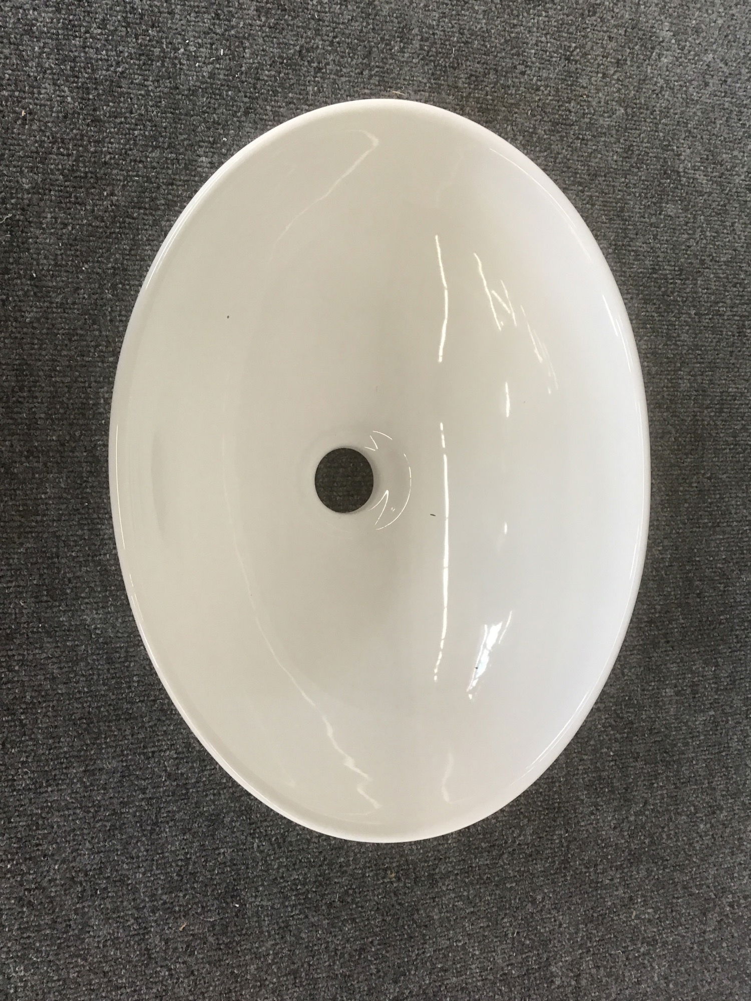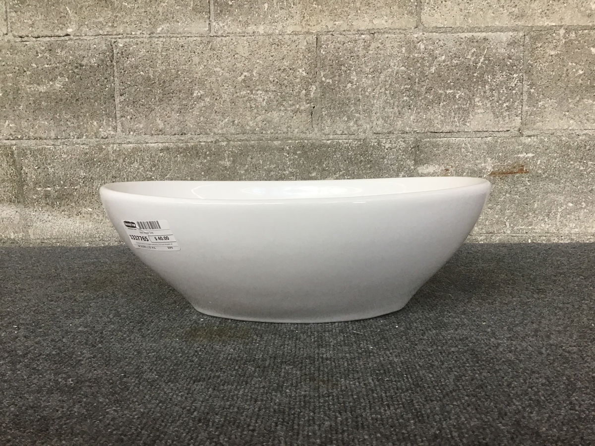 Having arrived in its original packaging, this oval shaped white vessel sink has never been installed.