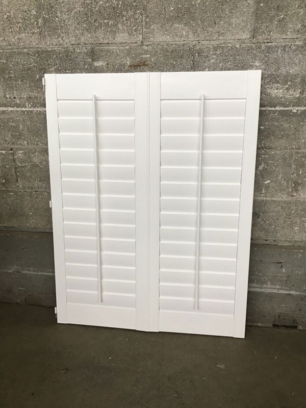 NIB, Interior Shutter, white PVC construction so it'll probably be ok used outside? Custom order from Blinds.com. Will close a 34 x 46" opening. Photo may be representational.