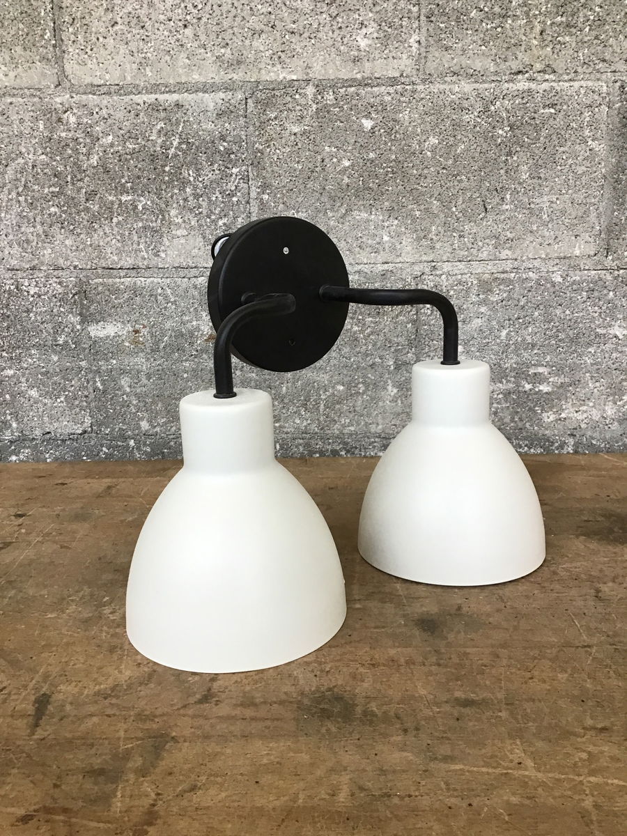 New in box Nuvo brand "Sloan" 2 light vanity sconce suitable for damp locations. Crisp & modern matte black and white metal finish!