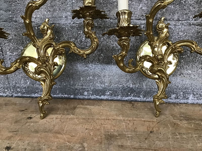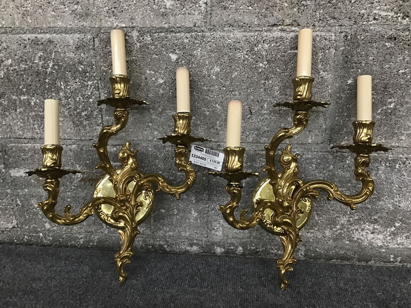Ornate Brass Sconce Pair