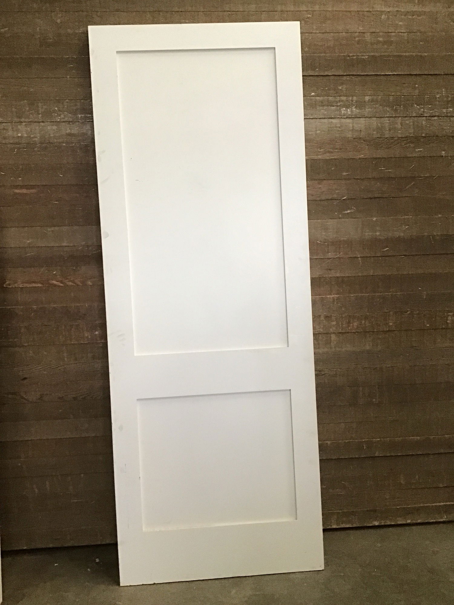 Never installed, oversized faux shaker panel solid core door. No hinge or bore cuts. May have minor cosmetic damage otherwise in good condition.