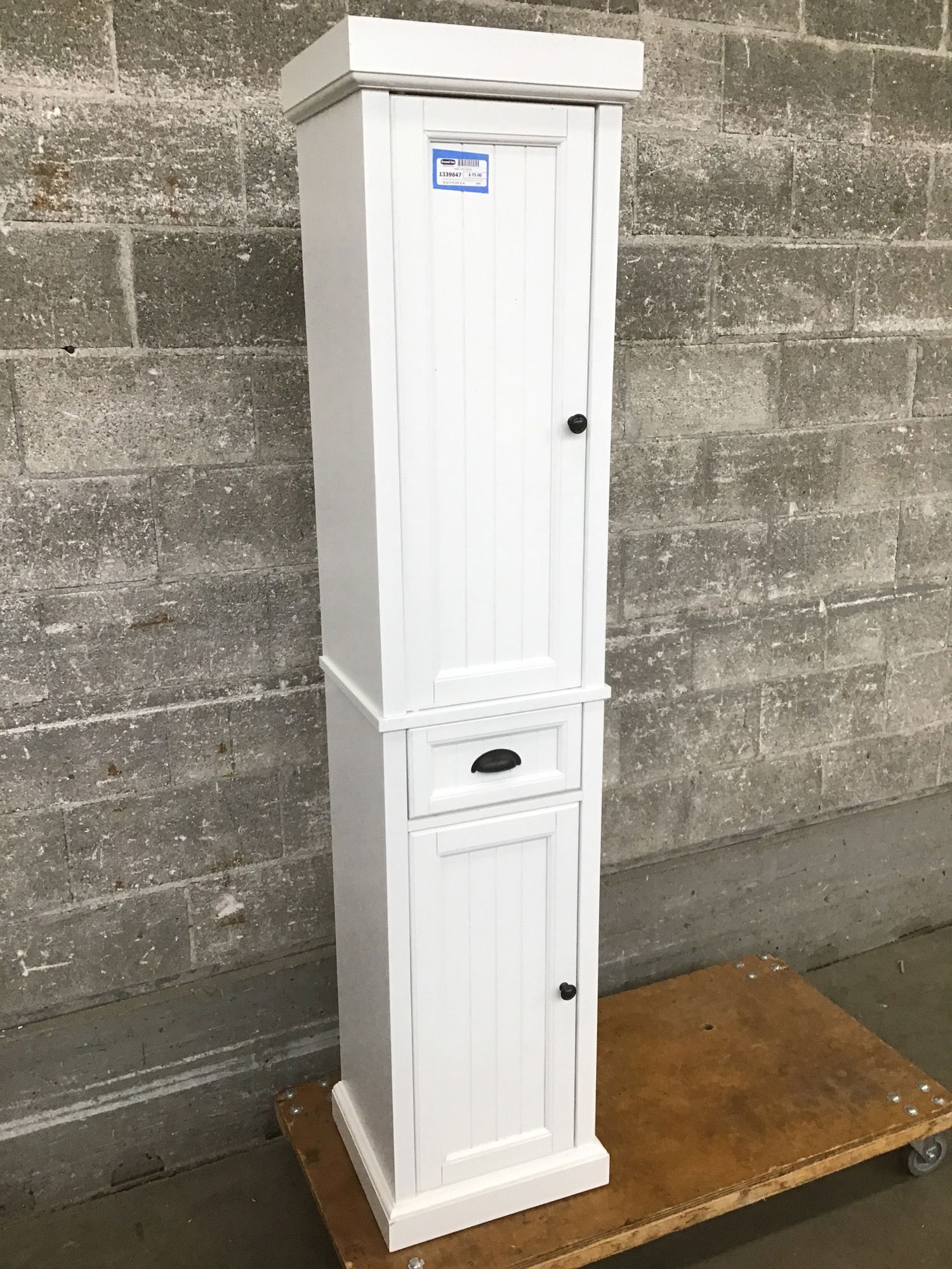 Smallish linen cabinet with faux bead board door and drawer faces.