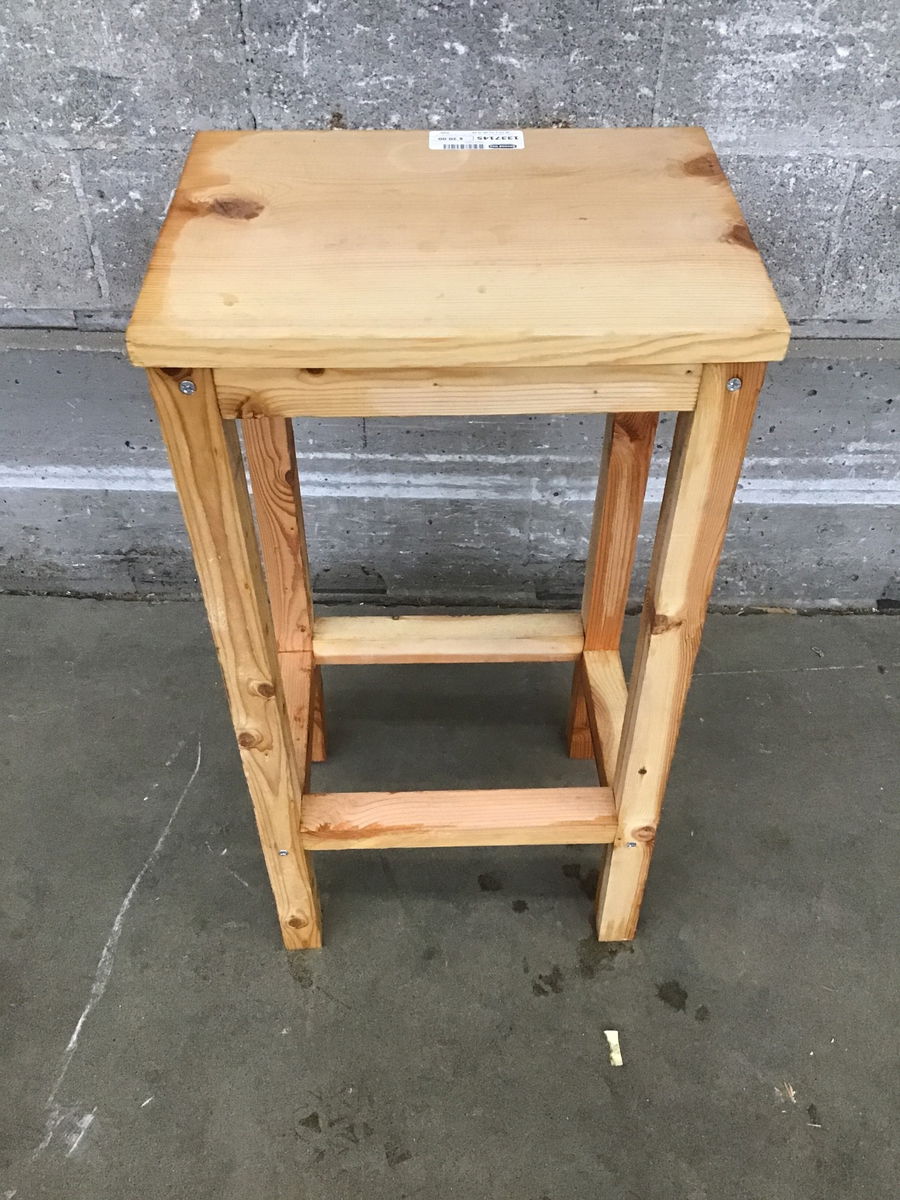 Small, seemingly home built wooden table that would be a perfect home for a plant or two (if they're small).