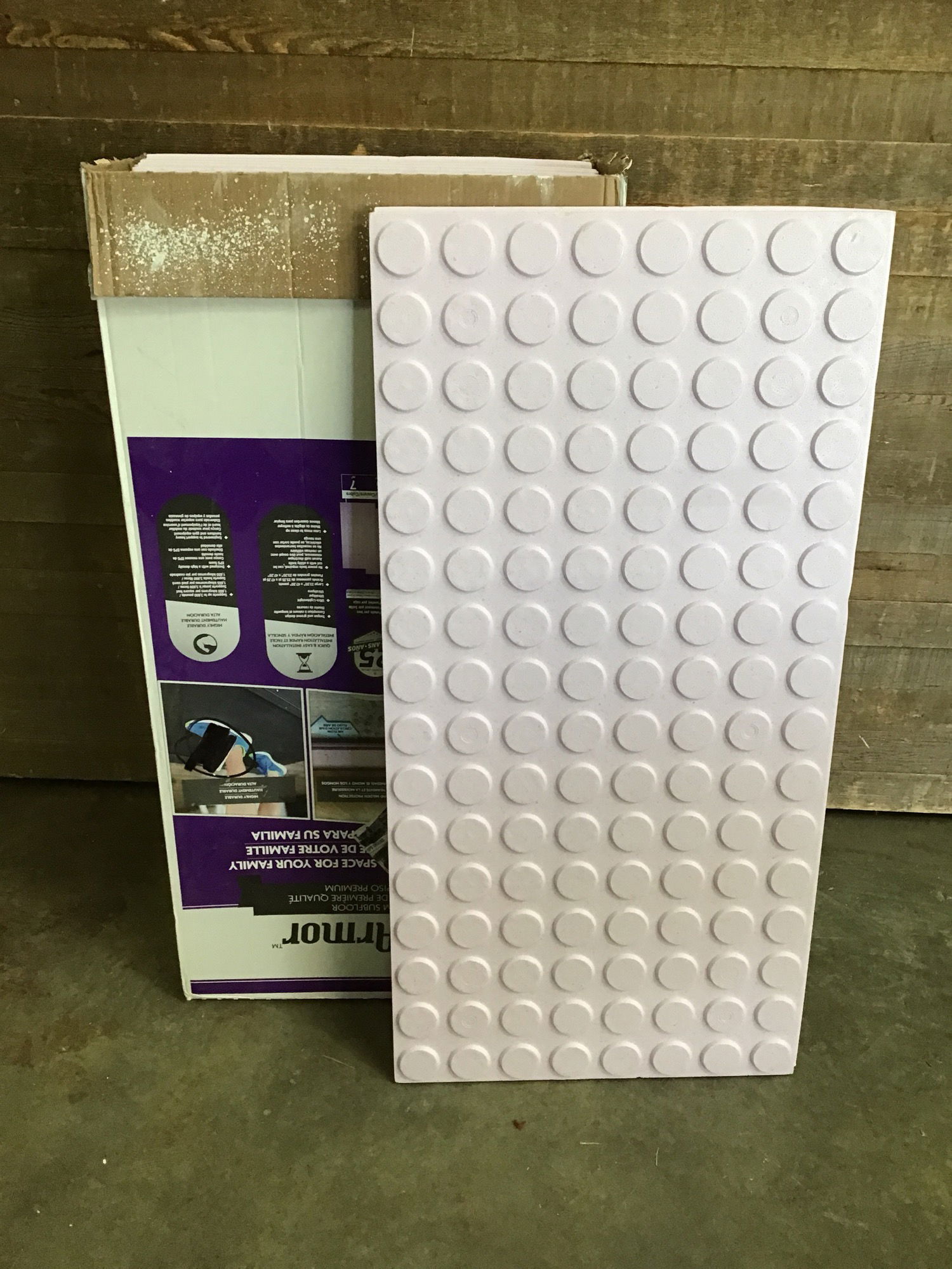 1" thick rigid foam premium subfloor panels with air gaps built in to protect against moisture. 6 total panels covering roughly 45 square foot total.