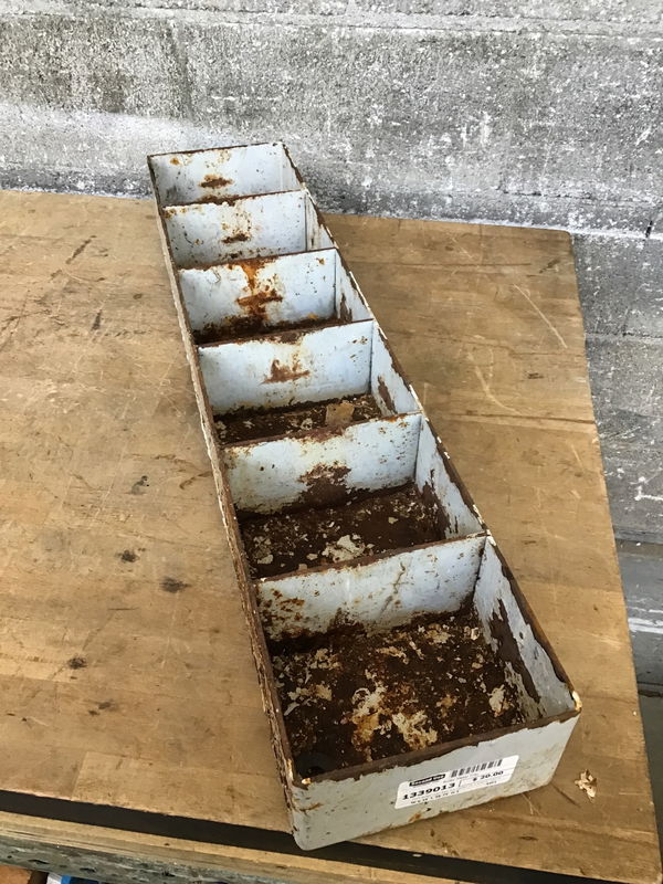 Thick gauge rusty steel tray perfect for a shop or retail display if you clean it up.
