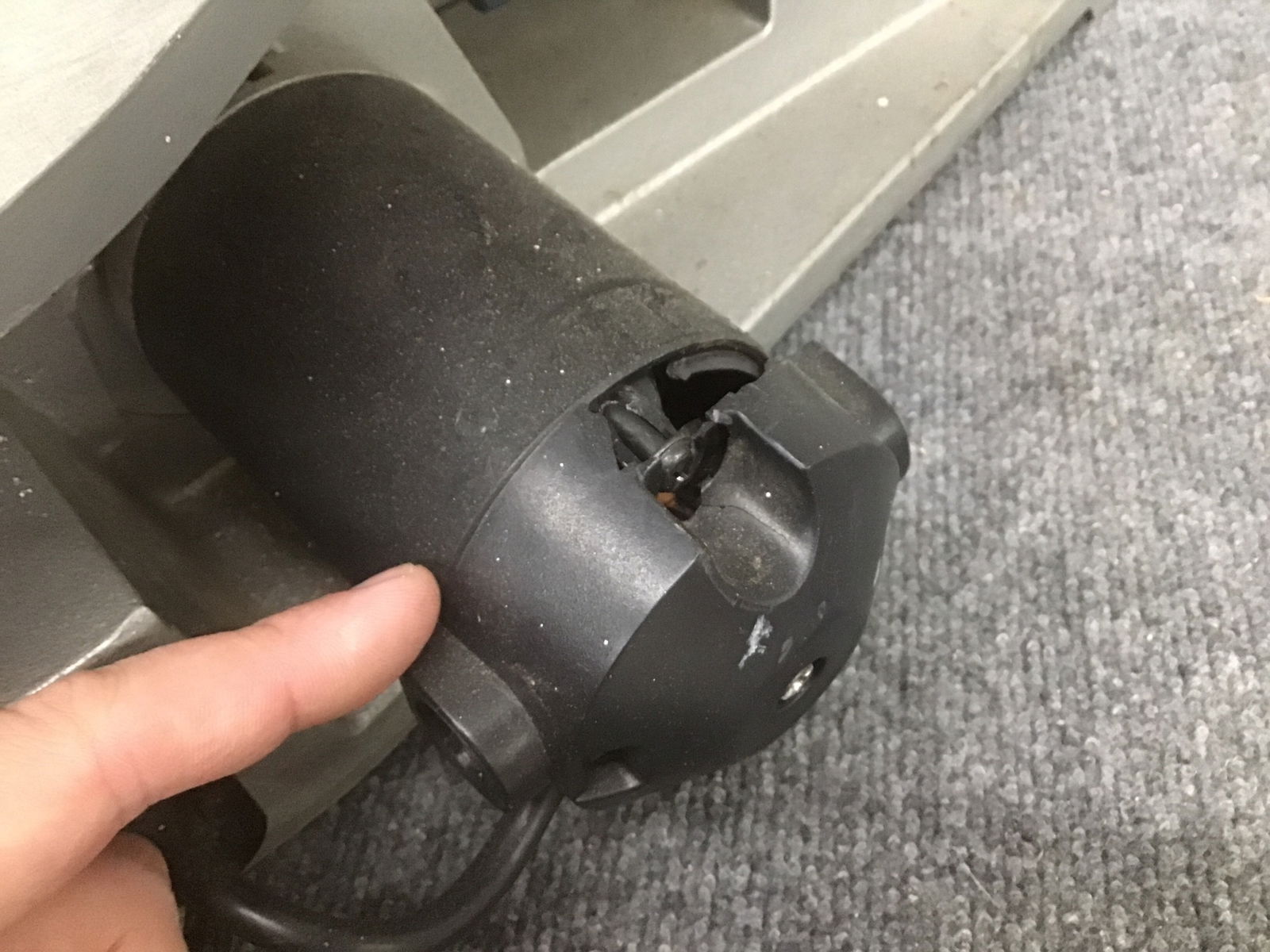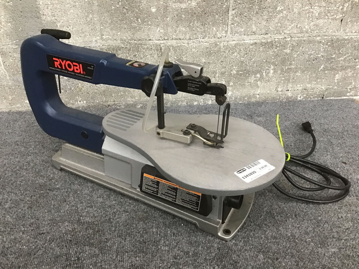 Ryobi scroll saw (Model SC162VS) that seems to work fine when briefly ran in Receiving. Has variable speed option. The motor housing is cracked and has a piece missing. Price reflects.