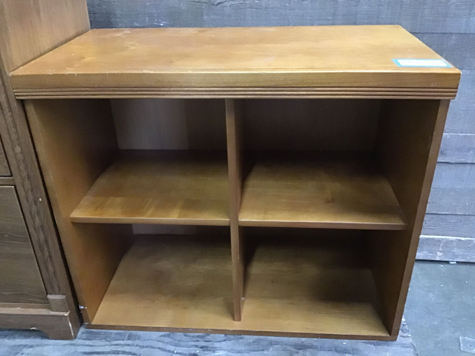 Shoe shelf by Pulaski Furniture, medium stain hardwood, in good condition. Great for an entryway to organize your footwear.
