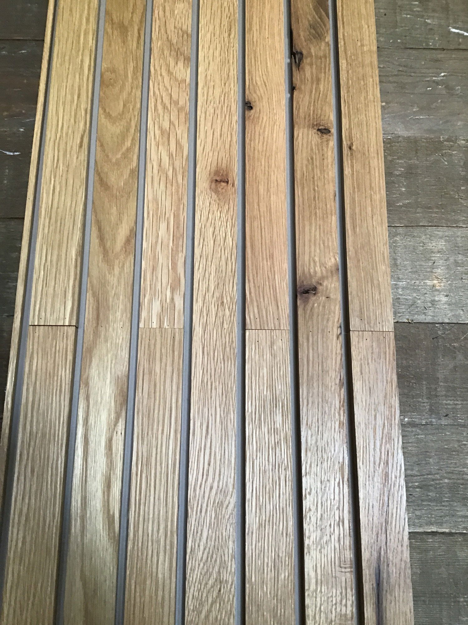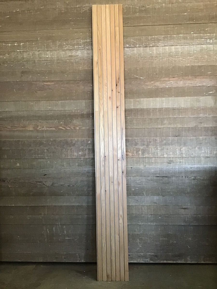 Modern looking solid Oak 10.75" x 96" slat wall panel. Slats are mounted to a piece of ply with a 1/2" reveal, ready to go for install! Perfect for the accent wall you've been dreaming of! There may be minor cosmetic scuffs or scrapes.