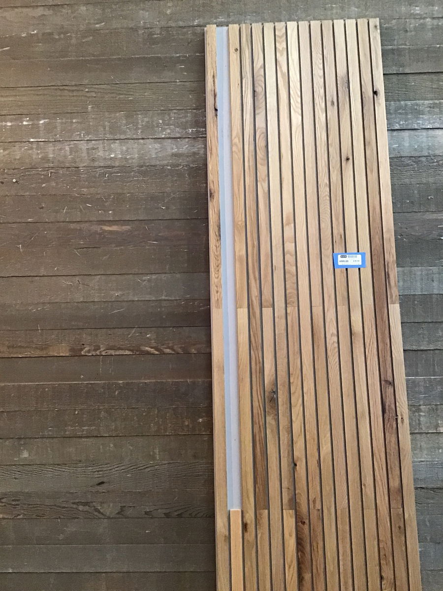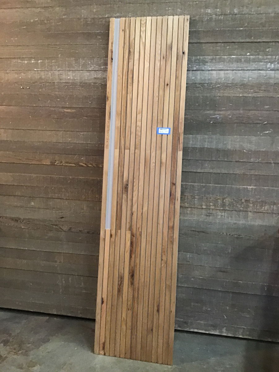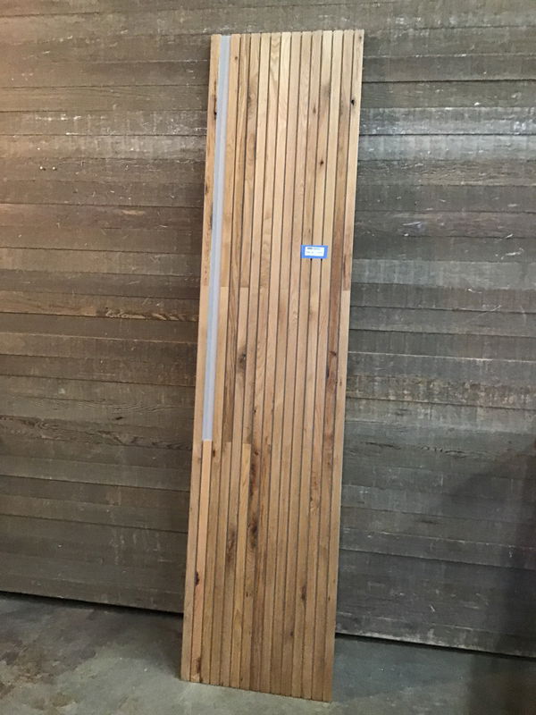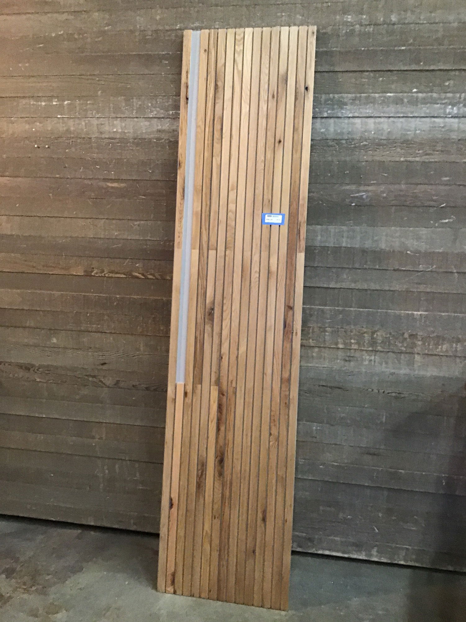 Modern looking solid Oak 22.5"x96" slat wall panel. Slats are mounted to a piece of ply with a 1/2" reveal, ready to go for install. This guy is a missing slat piece. PRICE REFLECTS. Should be an easy fix.