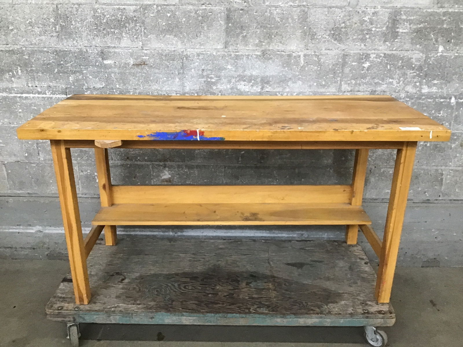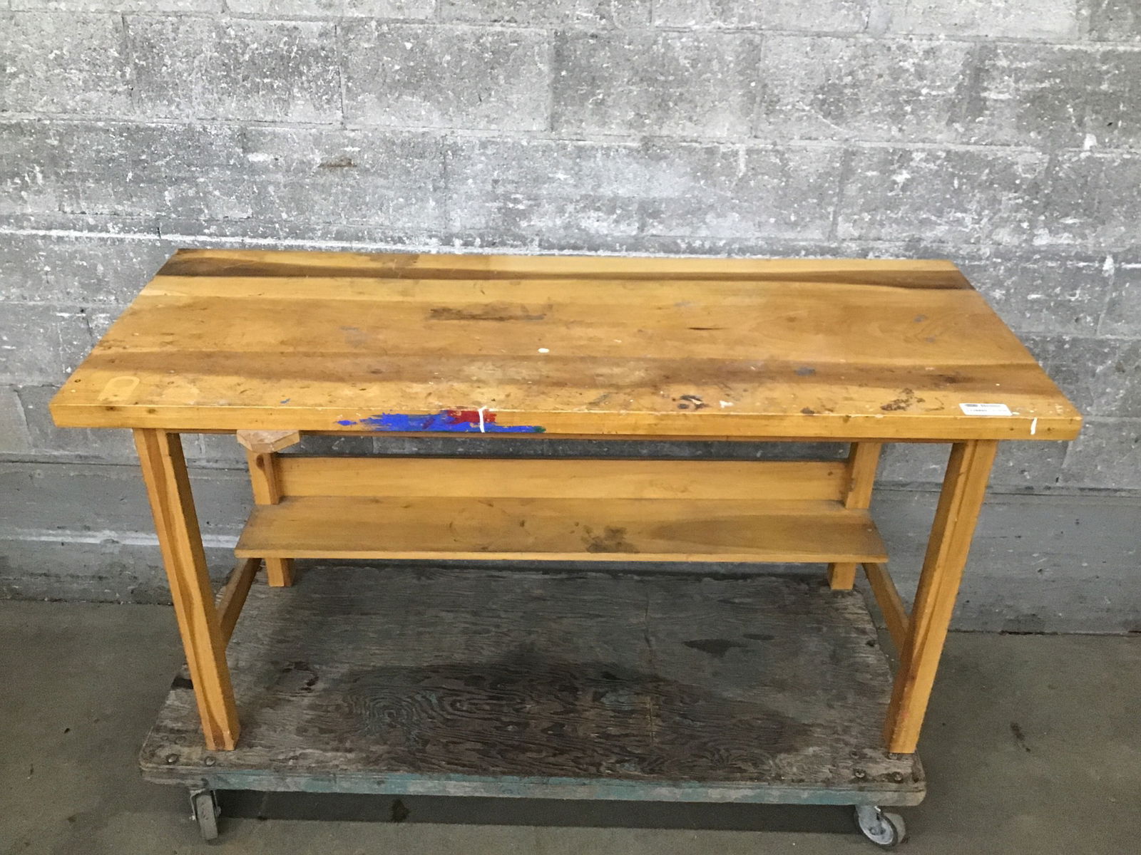 Solid wood work table with plenty of life left to support your creative endeavors!