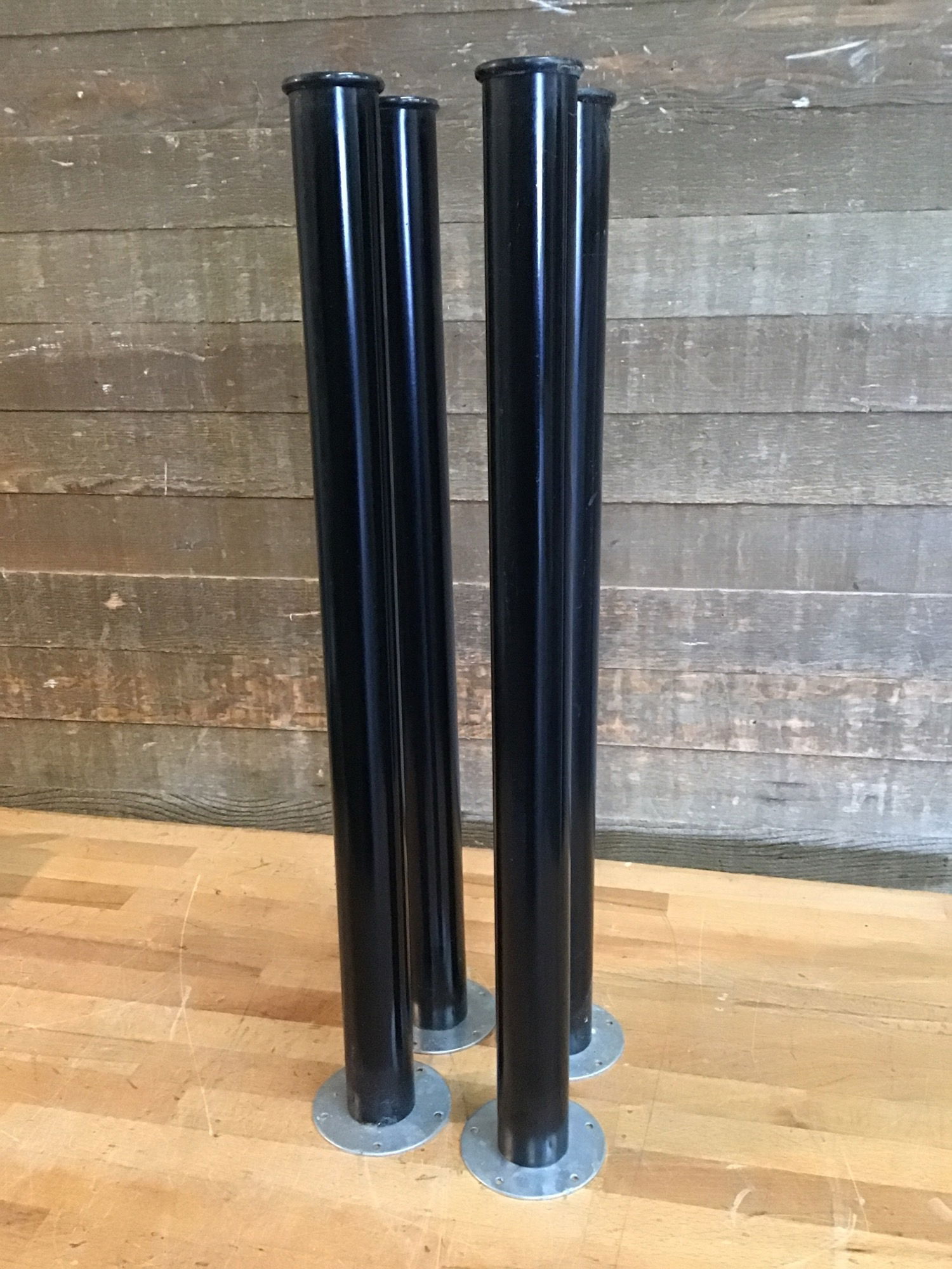 Set of 4 circular steel table legs. Just screw it into your custome tabletop to build yourself a quick desk!