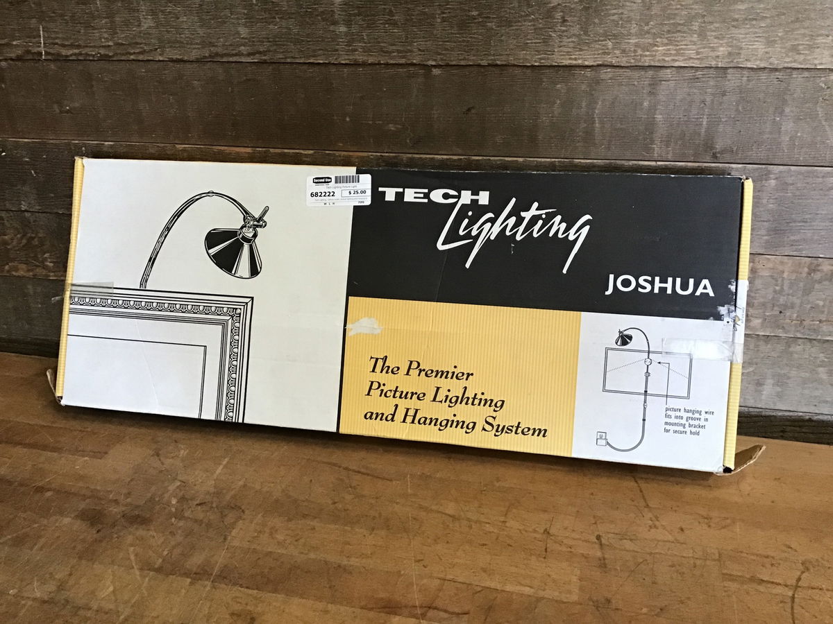 Tech Lighting, Joshua model, picture lighting and hanging system. This little DIY in a box is meant to provide direct light to hanging painting and pictures like an art studio in your home. Looks to be complete in box and never used.
