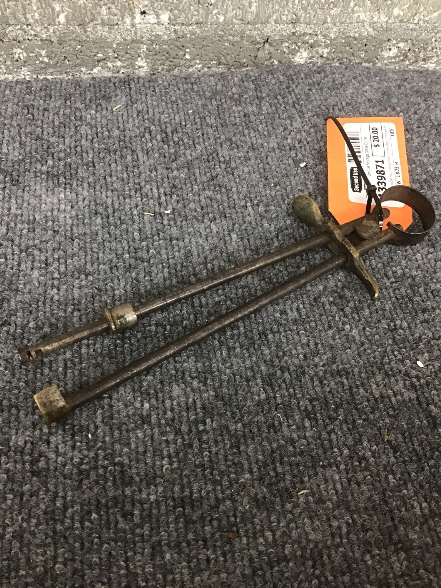 Glass cutter that "clamps down" on the edge of the piece of glass and provides a "fence" to keep your cut straight. I've never seen one before.