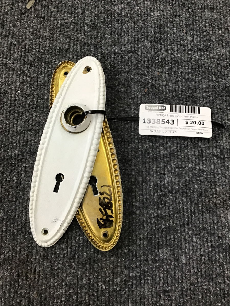 Two Matching Vintage Brass Door Escutcheon Plates. They have been heavily painted over, but can be cleaned off to show off that nice brass!