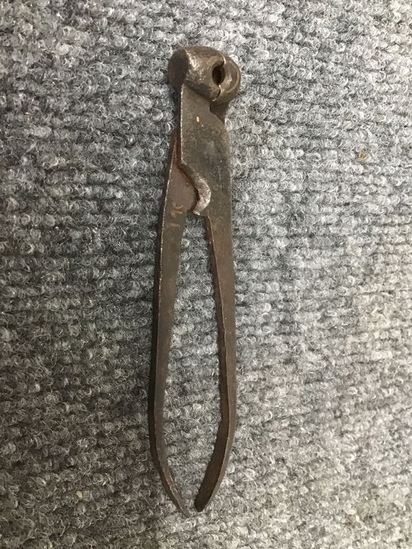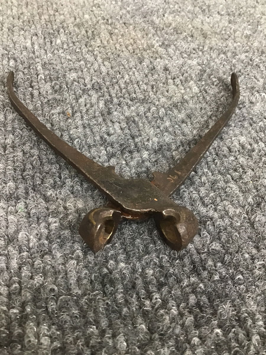Vintage steel round bullet mold, looks like about 9/32" size. Appears to be hand-forged.