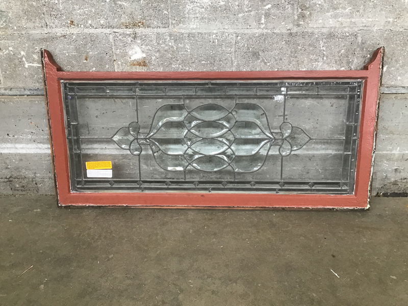 This vintage elegant wooden window sash features a total of 70 transparent and semi-obscured true divided beveled cut glass lites. This one is signed by a Gina Anderson and Studio marked with what looks to read 'Fabriglass Studio' in 1986. This piece is ready to enchant beams of light and refract sleek rainbows across any space.