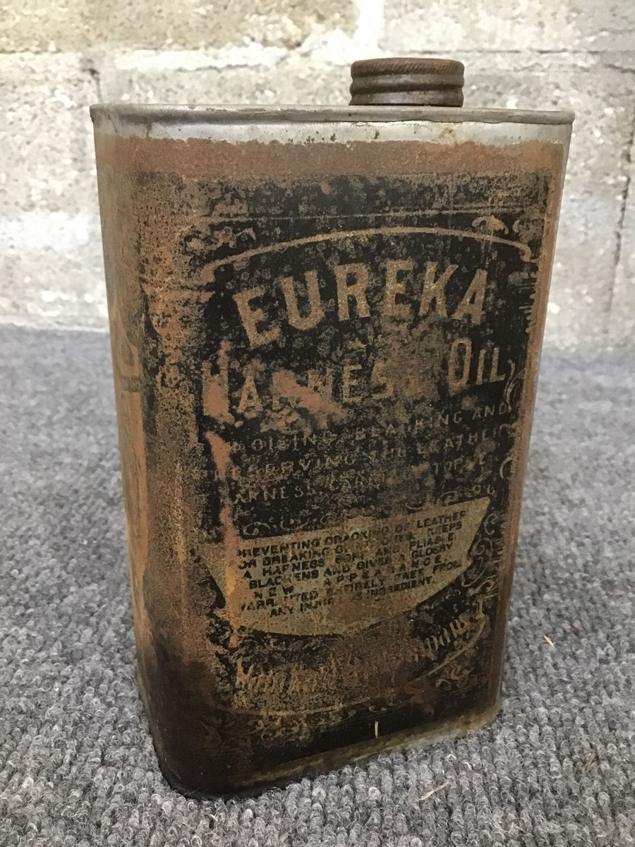 100 year old harness oil included with this super neat quart Eureka Harness Oil can.