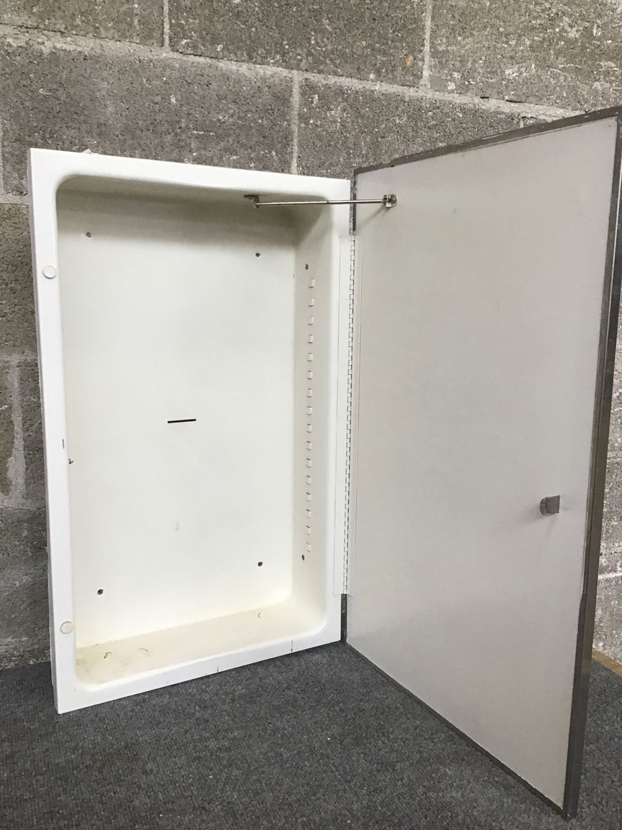 Vintage medicine cabinet with glass shelves and clips, overall, in good shape.
