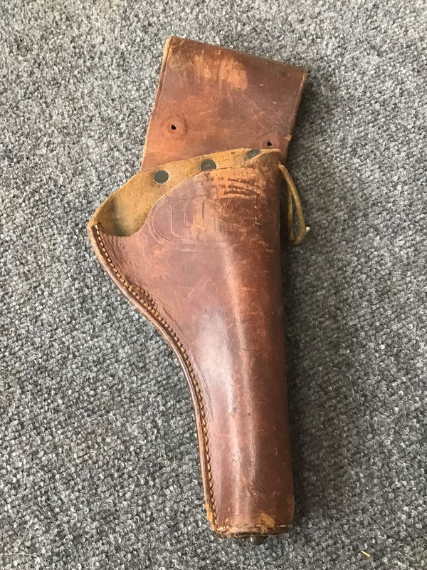 Vintage open leather holster stamped "US".