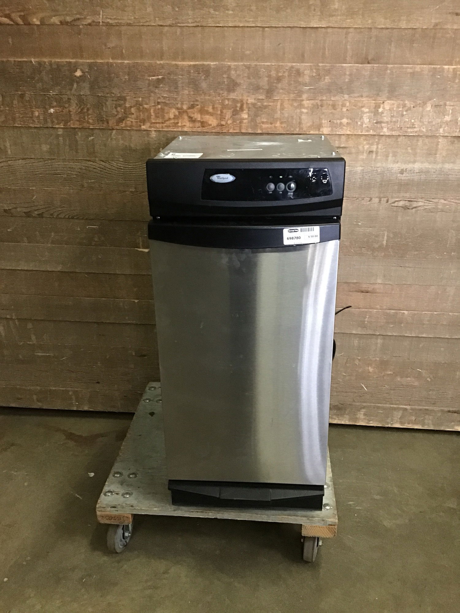 Manufactured in 2006. Stainless steel under-counter trash compactor. Some shmutz to clean off from previous use. Tested in-house and appeared functional.