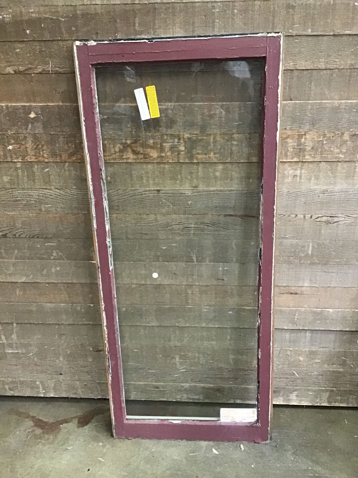 Vintage wood window sash with a single glass pane. Frame is in fair condition but still great for hanging room partitions or DIY greenhouses/cold frames.