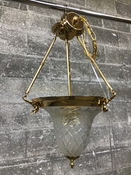 Brass & Etch Glass Bell Jar Pendant